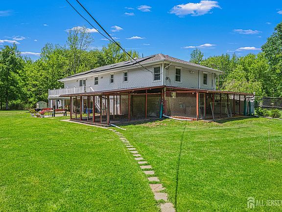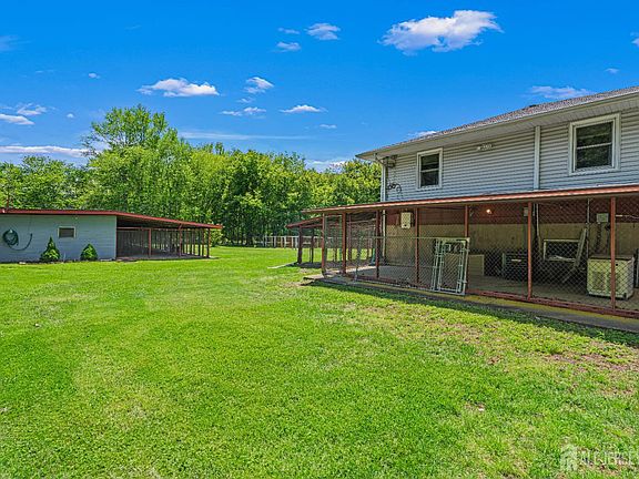 Talk about Unique! . This completely remodeled raised ranch sits on 7.3 glorious acres on Texas Rd. Set back from the road, this property offers a prairie-like setting. The house features an open floor plan. A beautifully remodeled kitchen with granite countertops and stainless steel appliances. Spacious living room with gas fireplace. Two gorgeous remodeled bathrooms. There is recessed lighting in most rooms and a spacious home office/den. The primary bedroom is oversized as it was at one time two bedrooms,( Can easily be converted back to three bedrooms). The second bedroom is generous with ample closet space.. The basement offers work stations and LOTS of storage. The garage features even more storage and will easily shelter one vehicle from the elements. The exterior of the home offers vinyl siding with stone overlay on the front. The WRAPAROUND composite deck is wonderful. Imagine yourself overlooking the spacious property with a fresh-brewed coffee in the morning, or enjoying libations at the end of the day. The home also features a whole-house generator for your protection and peace of mind. There are caged dog runs, a handball wall, and a basketball hoop for your enjoyment. You will also find THREE stick-built storage sheds to the side of the house. They are in GREAT shape and all have electricity. For DECADES, this property was the home of one of the PREMIER German Shepherd breeders in NJ. The property was also the home of a kennel, grooming and boarding business. There are two outer buildings with approximately 2700 sq feet of space. These were the grooming and kennel buildings. Both buildings have heat. The property is zoned R120 (Residential 120,000 sq feet). The entire lot is approximately 321,000 sq feet. There is room to subdivide with variance. ( Buyer to do their due diligence) The land use is still General Commercial (specifically a kennel). The outer buildings are perfect for a small business owner to store supplies, and there is ample space near the back buildings for a fleet of vehicles. The seller is including a 1 1-year home warranty from Cinch. Bring your vision and enjoy this property as the current owners have for years!
