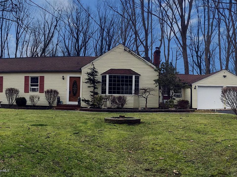 Calling all commuters! Don't miss this well maintained Marlboro ranch home featuring 3 bedrooms, 1.5 baths located on approx. 1 acre of property just minutes from the NYC park & ride. With lovely refinished hardwood floors and fresh paint, this special home is sure to please. Enjoy the spacious living room with wood-burning fireplace and oversized bay window with custom window seat. The kitchen features granite countertops, decorative stone/tile backsplash and newer appliances. Enjoy the peaceful views of the private wooded yard from the large master bedroom. Bonus multi-purpose breezeway connects the 2 car garage to the main home. Other outstanding features include recessed lighting, ceiling fans, large basement, newly replaced boiler, sprinkler system, multi-level deck and storage shed