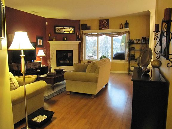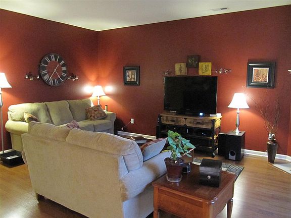 Step inside this stylish property and feel immediately at home. Upgraded laminate flooring and 9-foot ceilings throughout allow for any style and color of décor. Surprisingly large master suite and bath offer a trey ceiling, double vanity, generous walk-in shower, and a large walk-in closet equipped with Closet Tamers. Two additional bedrooms in a split floor plan easily accommodate guests and other family members. An attractive vented gas fireplace creates the focal point of the living room. All appliances stay in the kitchen. The stainless steel refrigerator is only 4 years old. Need more room? Enjoy the 4-season room overlooking the pond and landscaped yard complimented by a decorative expanded patio. This home is an approved Energy Star Home built to provide 33% more energy efficiency. The location qualifies for USDA financing offering zero down payment. Use of the club house is included in the association dues.