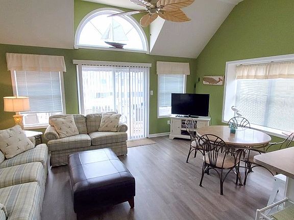 Beautifully decorated and extremely clean, this impeccably maintained 3 bedroom 2 bath townhouse located on the quiet west side of the island offers all the comforts you could ask for in your shore getaway. Upon entering the home you be met with a custom hall tree with storage nooks plus warm decorative elements including brand new carpeting. The first level includes 2 spacious bedrooms, a full bath with tub and laundry with full sized appliances. On the second floor you'll find brand new luxury vinyl plank flooring, an expansive living room with vaulted ceilings that opens up to your private deck with retractable awning, a large kitchen with breakfast bar and loads of cabinet space. Additional features on this level are a full bath with tub and another large bedroom with sliders opening to the rear deck with retractable awning which affords bay views. Other improvements to this fine property include Trex decking, a new stove, whole house water filtration system and new HVAC system. Lastly, there is off-street parking for 2 with 1 car in the driveway and the other in the private over-sized garage with separate storage room and door to the rear yard and outdoor shower. If you're looking for the perfect shore home look no further than this fine property.