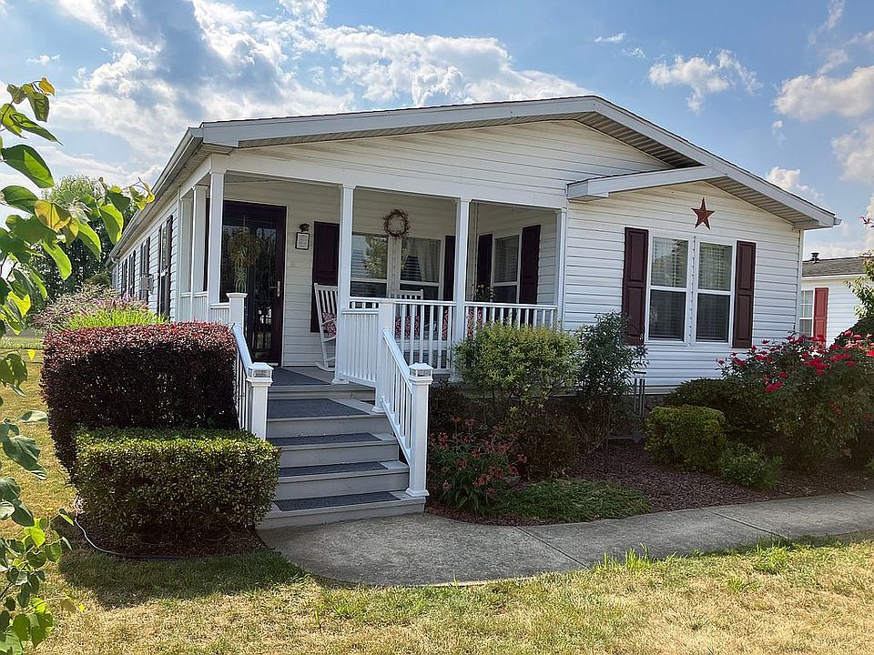 FOR SALE BY OWNER: A beautifully-maintained, over 1300 ft2 mobile home in a friendly, quiet, 55+ community-living setting awaits you. Stunning curb appeal, with a beautifully landscaped yard makes this an attractive home you can just move right in to. This home features 2 bedrooms and 2 full bathrooms. The spacious living room has vaulted ceilings and a gas fireplace. The kitchen has plenty of storage and is open to the large dining room. There is a nicely-sized master bedroom, with an attached master bathroom. The master bathroom has a brand-new walk-in shower and double sinks. Off of the master bedroom is a large four-season room with a gas stove, that overlooks a large field. Central air, direct-line gas heat, laminate floors and a 2-car cement driveway complete this amazing home. Shadowstone Village 55+ community offers many activities including occasional meals, card games, bus trips and a recreation center. Conveniently located near shopping areas and healthcare facilities. Asking price is $141,900.