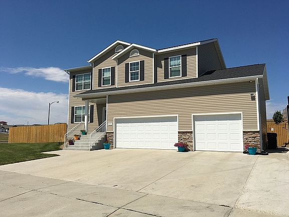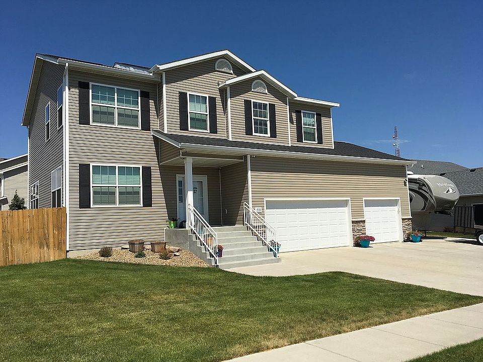 Realtors welcome! Call or text for a showing! Wonderful two story, four bedroom, three bathroom home located in a quiet Northwest Bismarck neighborhood. This house is across the street from a new park and lots of greenspace. The home was built in 2011, and has all four bedrooms located on the upper level. The top floor has a large family room when you come up the stairs. Included on the second floor are three bedrooms along with a full bathroom and separate laundry room. The top floor is also home to the master bedroom that is 16.5x13.5 ft with an additional nook area. There is a connected private master bath with dual vanity, 5 foot shower, and linen closet. Continue on into the large master closet. On the main floor of this home you will find a bonus room that can be used as an office, formal dining, or a play room (as it is currently being used as). There is a half bath on the main. The living room, dining and kitchen are great for entertaining. The living room has a gas fireplace. The kitchen has a walk-in pantry and custom tiled backsplash. This level has new coretec flooring throughout which was installed spring 2016. Walk out to the maintenance free 12X12 deck that is great for entertaining as it is on the north side of the home. Walk off the deck to the 15x12 stained concrete pad that currently holds a hottub (negotiable). You will find a completely fenced yard with playset, 8x10 Lifetime Shed on concrete pad, and 23x16 garden area. The yard has a sprinkler system and the garden is set up on its own zone. There are multiple perennials planted in the rock beds around the yard. There is an unfinished basement on this home as well, that could accommodate another family room, bedroom and full bath, along with even more storage. The garage is a triple with hot and cold water, floor drain, and gas heater. There is a 33x4 foot loft across the front of the garage for storage and even a basketball hoop! Beside the garage you will find a 70x15 foot concrete camper pad. This home has a whole house humidifier and camera security system. This system is currently set up with 8 cameras and can easily be expanded to 16. They can be viewed anywhere with a smart phone app. All window treatments are included. Realtors welcome!