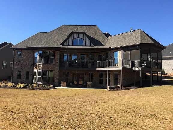 This 2.5 story all brick and stone house is set on a great lot in the cul-de-sac. Relax on the screened in porch by the see-through fireplace as you enjoy the awesome view of Hole #6 at Woodfin Ridge Golf Course. Watch the approach shots and read the greens as the golfers putt out. The entire house on the golf course side is lined with windows to enjoy the view from anywhere in the house. The upstairs bedroom has a birds eye view of the green as well. The oversized 2 car garage with closet and utility sink has plenty of room for 2 cars and storage. Inside, the huge kitchen spills into the family room with plenty of room at the massive bar for family and friends. Sit by the see-through fireplace inside at the kitchen table or outside in the screened in porch. The porch is connected to the back of the house by a large deck with a picnic area. Wake up to a sunrise over the golf course from the master bedroom. It's like you are living in a vacation house!