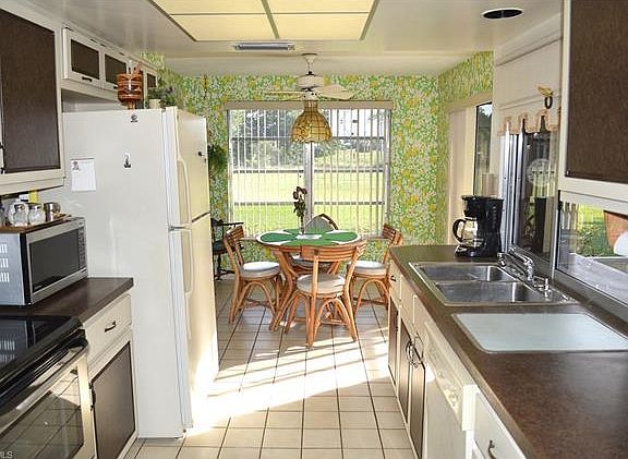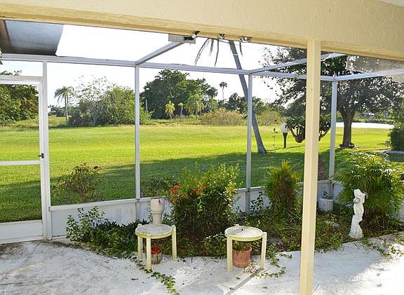 Located on the north side of the old Cape Coral golf course, this one-owner home has great southern exposure landscaped views. Built in 1980, this is a 2 BR, 2 bath home has just under 1600 sqft under air. Bright and sunny throughout the home with ample windows and a large bank of sliding glass doors to the living room and sliders from the kitchen and master BR as well. Currently includes a screened-in lanai, but plenty of room for a pool. The master suite boasts two large walk-in closets, duel sinks in the master bath. Both bedrooms are of nice size. Well cared for as well; the roof was replaced in 2010, A/C in 2011, new hurricane resistant garage door in 2012. Just a bit of cosmetic updating will make this a gem.