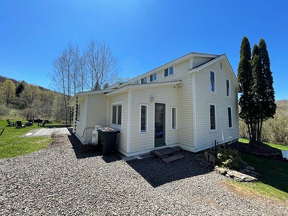 Built back in the 1800s, this home has been completely renovated and transformed into a sleek and sophisticated contemporary farmhouse; with the timeless clean lines that are traditional to Shaker style design. You'll be dazzled by the balance of classic farmhouse spirit and modern flair. You can rest assured with all of the recent upgrades, including new roof, siding, electrical wiring and service, windows, Utica boiler heating system, and septic system. Escape to the Catskills with 9.6+/- acres of land extending on both sides of the road for privacy. The grounds are incredibly scenic with intricate stone walls, fine landscaping, interesting rocky outcrops, garden shed, beautiful meadow, apple trees, and blueberry bushes. Entering the home, you'll come into the foyer with bench seating and tile floor. This leads you right into the exquisite open living space. The kitchen is cheery and open with gleaming white granite counters, tile backsplash, and stainless-steel appliances. You'll love the view of the backyard showcased from the large kitchen window. Enjoy casual dining with bar seating around the peninsula. The living room, with its engineered Oak flooring and built-in shelving, is bright with natural light and views of the great outdoors. Open up the glass door and relax or entertain right out on the back patio. Back inside, the living space flows into a front den/office as well as an open dining area with character from the original farmhouse wood beams. The first floor is completed by a sweet bedroom and lavish full bathroom with laundry space. Upstairs, the luxury continues with a charming bedroom suite with full bathroom and the magnificent master bedroom and bathroom. In the master bedroom, you'll feel like you're floating on a cloud with spectacular views all around you and your spa-like bathroom is spacious with double sinks, grand shower, and Jacuzzi bathtub. Nicely located between Delhi and Oneonta, the property is just outside the artistic hamlet of Treadwell and within close proximity to all the Catskills region offers, including farmers' markets, charming shops, the Delaware river and reservoirs for kayaking, farm-to-table restaurants, hiking, and skiing at Plattekill & Belleayre.