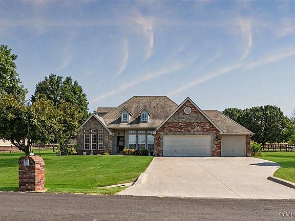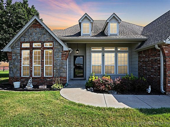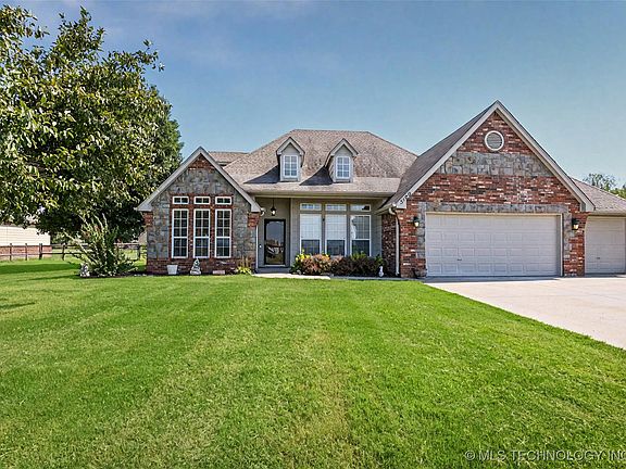 4 Bedrooms plus 1 Dedicated office, 3 full baths, 3 car garage. Open kitchen plan with large dining area, portable center island and eating bar. Large living with corner gas fireplace. Master is king sized with full glamour bath including corner tub, separate vanities and walk in shower, also featuring huge walk in closet. Grand office located at front of the home. 3 bedrooms on first level. 4th bedroom is oversized on second level and has private full bath and walk in closet. Zoned hvac. 3/4 acre lot is fenced and features well placed trees and covered back patio. Located near hwy 75 and hwy 20. Local businesses include QT, Sonic and planned urgent care and Arbys. Collinsville Schools. Tulsa County.
