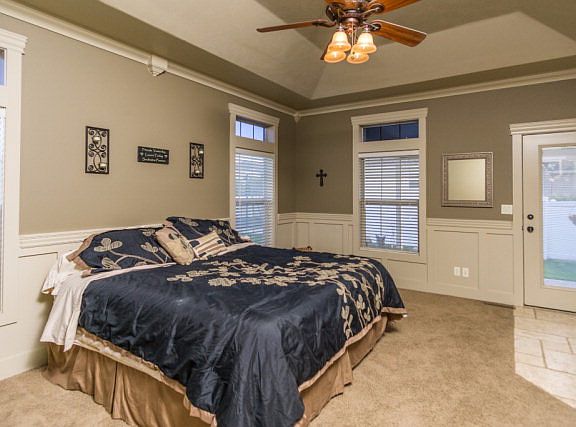 Perfect floor plan for entertaining! This spacious ranch style home offer an amazing great room effect with vaulted ceilings! The gourmet kitchen with Viking gas range is a chefs delight and expands into the huge breakfast bar and dining area perfect for entertaining your family and friends! Features include granite counter tops, stainless steel upgraded appliances, beautiful slate flooring! 5 bedrooms, 3 full bathrooms, additional office and a craft room too! Huge master suite with extra deep walk in closet, master bathroom boosts walk in shower, jetted tub, granite and tile. Daylight basement includes a perfect family room with surround sound for movies, incredible storage space. Tons of upgrades, warm color palate, transom windows throughout . Triple car garage with shelving, extra large vinyl fenced yard with covered patio and fire pit, mature custom landscaping finishes off this beautiful home.