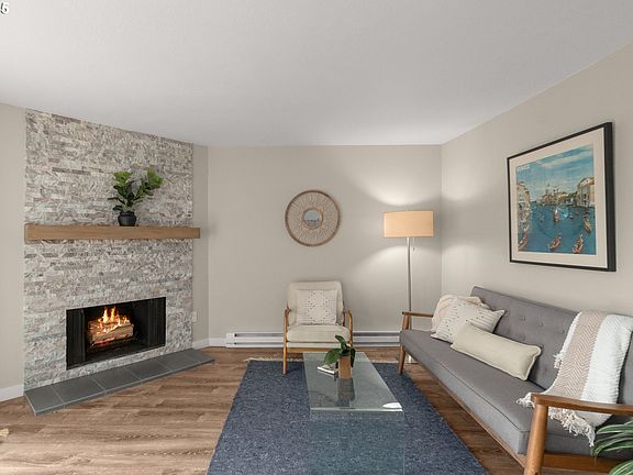 Welcome to the fully remodeled one-level oasis at Country Club Condominiums, where rental restrictions are a thing of the past! This exquisite ground-floor condo offers peace and top-tier upgrades. Enjoy the serene beauty of a natural area owned by THPRD, accessible right from your back door. Step inside to discover a designer's paradise with new luxury plank vinyl flooring throughout. The completely renovated kitchen boasts quartz countertops, a custom backsplash, new cabinets with under-cabinet LED lighting, and brand-new Samsung appliances. Modern lighting fixtures, an updated bathroom, and a custom fireplace with a stunning wood mantel enhance the charm.This condo ensures convenience with a new water heater, new zonal electric heaters, and all-new electrical finishes. Embrace resort-style living: walk or bike the trails around Bethany Lake, tee off at Rock Creek Country Club, or unwind on your private patio. Don't miss this rare opportunity! Schedule your showing today!