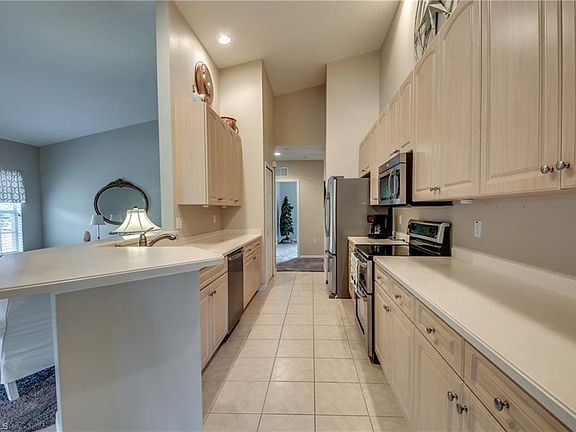 Great 3 bedroom, 2 full bath condo ready for it's new owner. Complete with larger-than-typical screened in lanai, and 2-stall attached garage. NEW A/C as of 2017. Open concept living area with vaulted ceilings throughout the unit including the bedrooms creating a more spacious feeling within the home. The kitchen includes solid-surfaced counter tops, and stainless steel appliances, as well as a double oven and pantry. Separate dining area, breakfast bar or outside dining are all options for you. The en-suite bathroom includes two sinks and ample space for sharing. in-residence laundry is included as well.