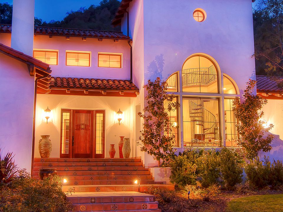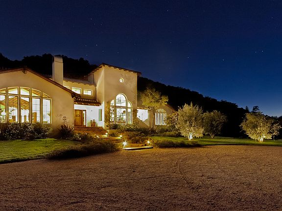 Private Spanish Revival home on approx. 7.5 acres in Ojai's prestigious East End, surrounded by avocado groves, citrus ranches, and 360 degree mountain and valley views. Single story offering extra high vaulted massive wood beam ceilings, open floor plan that flows from one entertainment area to another including approx. 6 outdoor patio areas Step down into great room from the foyer, elegant living space features a wall of custom windows that let ample natural light and views of the Topa Topa's. The Kitchen with granite counters, extra large island, Wolf range, Sub-zero. 3 bedrooms. Guest rooms have built-in custom cabinetry and tile bathrooms, The primary guest bedrooms bath has RTK tiles and large Baja-style shower. The expansive Master suite with pitched wood beam ceilings,, built-in bookshelves, spectacular mountain views, Owned Solar System, two offices and so much more. You will immediately recognize that this space was designed to be a welcoming retreat with private master bath, patio's, French doors. Just minutes from City of Ojai