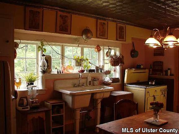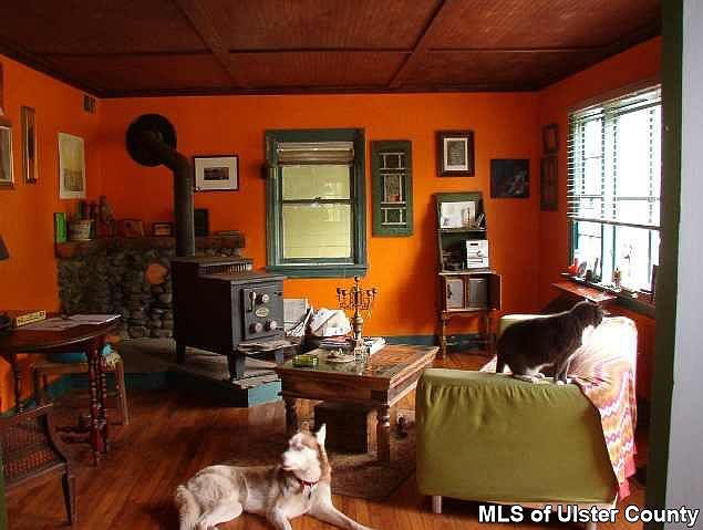 Adorable country cottage filled with vintage details throughout, all lovingly redone by current owner. Wainscott ceiling and oak floors in cozy LR with working antique woodstove,river rock mantel with cedar trim, built in bookshelves.Tin ceiling in kitchen, vintage appliances, oak floors add to the charm and character of the whole house. Renovated bathroom with antique cast iron tub, new pedestal sink. Large master BR with office, with cedar branch trim sleep loft, cathedral ceiling of old barnwood.