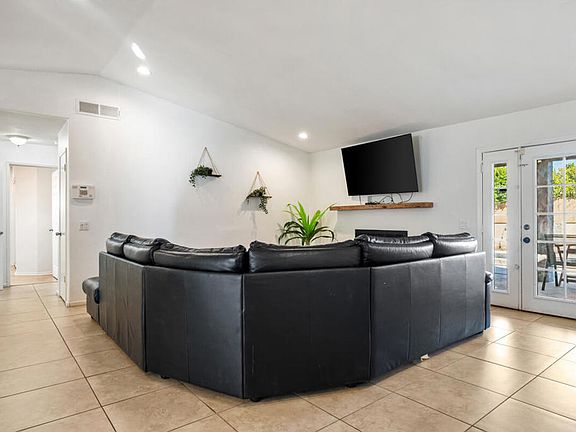This beautifully maintained 3-bedroom, 2-bath single-level pool home is move-in ready, featuring owned solar panels, stunning mountain views, and no HOA fees.Inside, enjoy vaulted ceilings, tile flooring, recessed lighting, and Smart Home upgrades including a smart thermostat, doorbell, and lock. The spacious living room offers a cozy fireplace, wet bar with sink and glass shelving, and direct access to the backyard.The kitchen boasts white cabinetry, granite tile countertops, stainless steel appliances, and opens to a bright dining area with bay windows. All bedrooms are generously sized, with the primary suite featuring private backyard access and an updated en-suite with a walk-in shower. The secondary bedrooms share an updated full bath with a tub/shower combo.Step outside to your private entertainer's backyard with an in-ground pool and spa, powered by a newly installed Pentair smart system with ScreenLogic remote. A covered patio provides the perfect spot to unwind, and the home includes an attached 2-car garage.Conveniently located near shopping, dining, and more, this turn-key home also offers great vacation rental potential. Don't miss out!