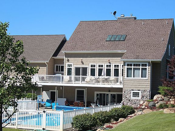 A 50-acre sanctuary of privacy, tranquility, and comfort. Property includes hiking trails, in-ground pool, private pond, 30X40 outbuilding, 1/2 court basketball, stone fire pit, tree house, and access to snowmobile trails. Convenient to all of the Sister Lakes, including public access to Dewey Lake 1/4 mile down the road. This family home is ideal for entertaining with two fireplaces, updated kitchen, newly renovated bathrooms throughout, and large recreation room with kitchenette and walk-out access to the pool. The home is bright and sunny and has a grand foyer, home office, laundry room, and primary bedroom, all on the main floor. Enjoy stunning sunrises from the back deck and gorgeous sunsets from the front porch. A one of a kind property!