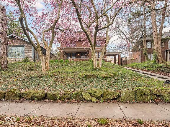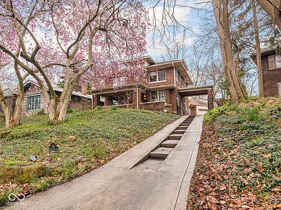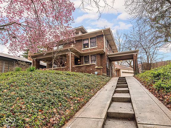 Perched on Pleasant Run, this all-brick Craftsman is rich with charming details and classic features. The stepped driveway and porte cochere hint at the grand beauty and craftsmanship that await inside, where you'll find original details like unpainted woodwork, built-in cabinets and a phone nook, and striking stained glass windows. The main level flows easily with its circular floor plan; from a living room with a stunning fireplace and attached sitting nook, into a spacious dining room featuring a unique pass-through hutch connecting to the kitchen. The kitchen is expansive, with a large island and tons of storage, and leads to a walk-in pantry. Off the kitchen, you'll find an ultra-functional mudroom with direct access to the attached two-car garage. A half bath is conveniently located on the main floor as well. Upstairs, the primary bedroom opens to a charming terrace. Two additional bedrooms, a fourth bedroom or office, and a full bath with separate tub and shower round out the second floor. The partially finished basement adds even more living space with a cozy rec room, laundry room, storage room, workshop, and an extra half bath. Out back, a deep yard with a firepit and playset offers room to play, gather, and unwind. All this, just steps from Ellenberger Park and the heart of Irvington. This stately home is steeped in history, and ready for its next stewards.