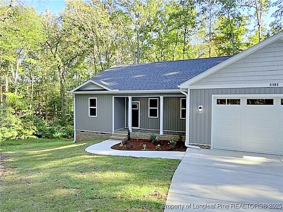 NEW Construction OPEN CONCEPT Split Bedrm RANCH w/Low FLAT GARAGE ENTRY into HOME/NO STEPS, 3bdrm 2ba, w/ awesome end of cul-de-sac location w/Extra Woods Forest behind Non-buildable Private Common Area!(COMPLETED by OCT 16th WEEK. SCHEDULE YOUR SHOWING Just Cleaned *CLOSE in OCTOBER *! (Only County TAXES)Inviting Stamped Concrete Covered Porch. 9 FT Ceilings & Water Resistant Lux Vinyl PLANK & TILE thru-out home!-No Carpet, Tons of White Cabinets & Quartz Counters in VAST KITCHEN w/BARSTOOL ISLAND for guests, DINING & FAMILY AREAS w/GAS LOG FP & Mantle, Sep Laundry Rm from LARGE DBL Garage. Matching Stainless DishWasher, & SmoothTop Range & mounted Microwave. Private MASTER Suite w/LG CUSTOM Step-in Tile Shower, Dbl Vanities & HUGE Walk-in Closet, easy RANCH LEVEL living with an open layout, bright neutral color palette, 10x16 Rear PORCH. LG Covered Stamped Concrete Front Porch, Centipede Sod Grass Lawn Front&Sides & seeded around,(some wooded to side/rear & forest beyond) GRAY & WHITE EXTERIOR VINYL, w/Gutters. Quick Access out REAR NORTH GATE to BYPASS & ALL major highways. Great Neighborhood & Very CLOSE to PRIVATE Salt Pool w/ NEWLY Resurfaced Pickleball/Tennis, NEW playground/play items. 315 Ac Lake Community fishing pond and lake access marina/lake access. Carolina Trace is a gated community that features TWO 18-hole "Robert Trent Jones" Designed Golf Courses. Approx 6 -7 minutes back to CLUBHOUSE/& Country Club Memberships are available "NO OBLIGATION TO JOIN", for Golf, Social/Dining/Pool Foods,Tennis &(PLUS fitness center 24 hrs)plus much more to offer. All residents have access to the 315 Ac Lake ("ONLY ELECTRIC POWERED" Vessels/Boats-NO gasoline powered permitted). Home is mostly private rear view/common area/non buildable behind. Outside entry under home to very high "walk-in" crawlspace w/ lots of room to store tools & maintenance items, etc...potential to create a small workshop type space? Easy Maintenance inside & out. SEE carolinatrace.org/p/Property-Owner-Associations-POAs for Community Information ! ByPass quick to Fayetteville, Ft Bragg, RTP, Chapel Hill, Cary, Raleigh, Pinehurst, S Pines. GUARDHOUSE facing Hwy 87. GPS for Carolina Trace Entrance Address is 51 Traceway South, Sanford, NC 27332, & phone to GATE GUARDHOUSE (919) 499-2339. MUST have Agent with you or PASS by RESIDENT to ENTER! INFO: 2100 Country Club Dr, Sanford, NC 27332,(919) 499-5121, info@carolinatracecc.com , ALSO: carolinatracecc.com