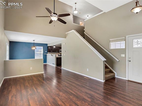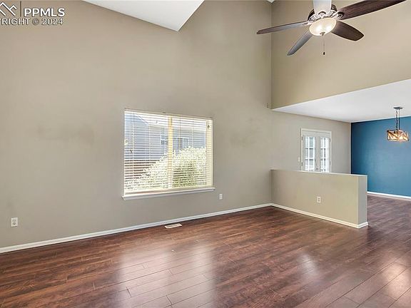 Welcome to this great home in Stetson Hills in the Powers Corridor with all it has to offer. This home has an open floor plan with vaulted ceilings in the living room and dining room. The spacious kitchen has plenty of counter space, a large pantry and stainless steel appliances. The wood laminate flooring provides a warm and welcoming feeling complemented by the large windows and plenty of natural light. There is also a powder room on the main level. The upper level has a loft space perfect for a small office or study area, a spacious primary bedroom and two additional bedrooms. The basement has a large family room, the fourth bedroom and a full bathroom. The laundry space is also located in the basement and has a built-in platform for your front-loading machines. This home is located within an easy commute to Peterson and Schriever and is close to schools, shopping, dining, and entertainment.