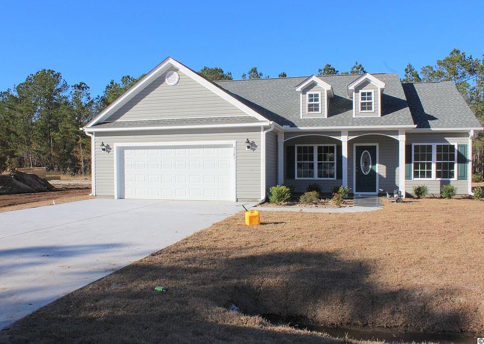 NO HOA fee, large home sites! Elm floor plan, relaxing front porch, rear screen porch with ceiling fan and patio. Open floor plan, dining room with tray ceiling, living room has vaulted ceiling, ceiling fan, large kitchen has custom built solid wood cabinets with crown molding, granite counter tops, breakfast counter, stainless steel appliances - microwave, gas range, dishwasher, pantry closet, and breakfast nook with ceiling fan. Owners suite has tray ceiling with ceiling fan, large L shaped walk-in closet, bay window, double bowl sinks in raised height vanity, garden tub and a walk-in shower. Split bedrooms floor plan. Rinnai tankless gas water heater, gas heat. Upgraded wood look waterproof laminate flooring through out. Upgraded interior trim includes 3 1/4" casings and 5 1/4" baseboards. Low E glass windows, energy efficient homes. Boat and RV parking allowed. Spacious finished/painted 2-car garage, with automatic door opener, pull down stairs to attic storage above. Irrigation system, gutters, sodded and landscaped yard. Natural gas community. Close to International Drive, quick/easy access to Myrtle Beach. Basic Restrictive Covenants. Video is for illustrative purposes only and may be of similar home built elsewhere. Square footage is approximate and not guaranteed. Buyer is responsible for verification.