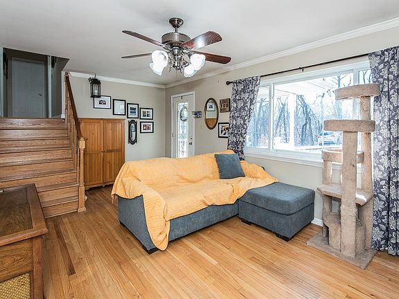 Former 3 bedroom, now 2 bedroom 2 full bath home located at the end of quiet dead end street. Enter the home into a well lit living room with gas fireplace and build in bookcases. Just off the living room is an open dining area with French doors staring over the a beautiful wooded valley. Updated kitchen with gas stove. Upstairs of this 4 level home there is a large master bedroom with dual closets. An addition bedroom and full bathroom finish off the upstairs. Back down the stairs with put you in the office/family/Rec Room with another full bathroom. Off this room is an oversized 1 garage. Down one more short set of steps is what is currently being used for storage. This room is framed and wouldn't take much to make into more livable area, and is complete with a walk out. Just awaiting your finishing touches. Agents please see agent remarks.