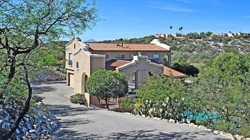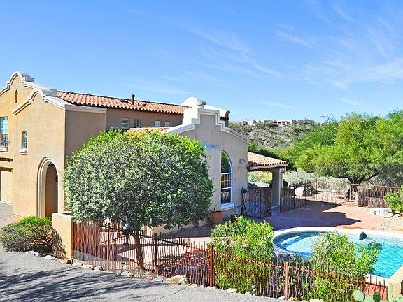 Beautiful Spanish Mission style custom Catalina Foothills home nestled in among rolling hills & natural desert. Soaring ceilings & high arched windows in living rm frame a cozy wood burning fireplace & mountain views. Separate family rm is open to remodeled kitchen featuring new quartz countertops, new appliances, & white cabinets with island & breakfast bar. Spacious primary bedroom suite with walk-in closet & covered balcony-perfect for enjoying sunsets. Primary bath has a double vanity sink with new quartz counters & walk-in shower. All 3 guest bedrooms are spacious & bright. Take advantage of spectacular outdoor living with 2 covered patios, spacious backyard & sparkling pool/spa. Pool service & monthly landscaping service included! 1 year minimum lease. $45 application fee per adult.