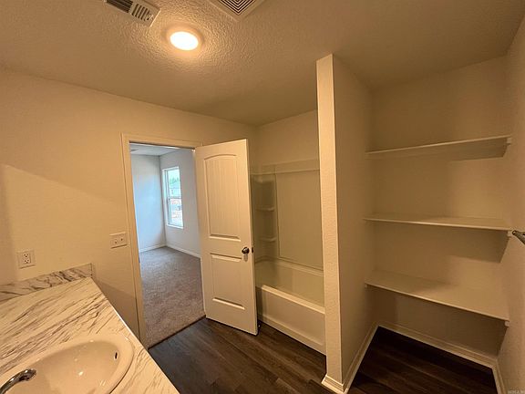 Rausch Coleman Foster II Floorplan. Upgrades in this home: crown on Kitchen cabinets, luxury vinyl plank in wet areas and Living Room and adjacent hallways, Cheyenne style interior doors throughout the home.