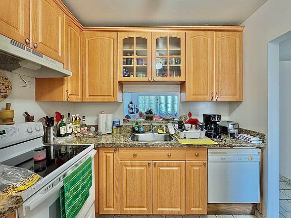 Granite countertopsBright open layoutLarge enclosed patioWood cabinetry