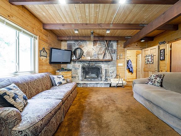 Updated cabin in a quiet, treed culdesac in Pine Mountain. Furnished cabin sleeps 21, with 3 bathrooms - rare in cabins! It has a new metal roof, 3 new heat/AC units - 1 for each level, new vinyl windows, huge Trex deck with a slide, new exterior paint, plenty of parking in the circular driveway & covered toy parking under the deck. Could be used as primary residence with year round water & power. Access to national forest, large field for horses, tennis court & play area. Nearby is Smith Morehouse Reservoir for kayaking & fishing, with miles of national forest trails. Just come & relax. What are you waiting for?