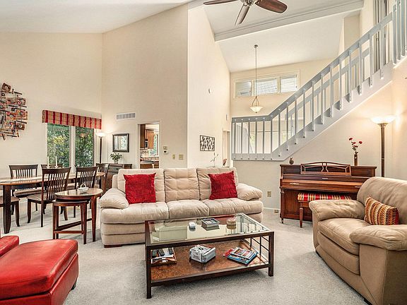 Conveniently located in the Farmington Square subdivision, this meticulously maintained villa/condo features an upscale interior with yard care and snow removal provided by the HOA. The serene setting, just minutes from Notre Dame, shopping, entertainment, and local hospitals, offers an unbeatable combination of convenience and tranquility. As you enter the home the tiled foyer leads into the vaulted living area with built-in shelving, gas-log fireplace, and a sliding door leading out to the deck. The updated kitchen features a breakfast bar and an eat in breakfast area with south facing windows, perfect for morning cups of coffee. The large first floor primary suite has a sliding door leading out to the deck as well as the beautifully updated en-suite bath with double vanity, stand up shower, and garden tub. The upstairs area includes the second full bath, private guest bedroom, and large loft area. The full, unfinished walkout basement is currently used for storage and could be finished for additional living area. The newer deck runs the full length of the rear of the home and provides plenty of room to enjoy the park-like setting. Ready to get your weekends back and let someone else handle the leaves? Come take a look and see if low maintenance villa/condo living can work for you!