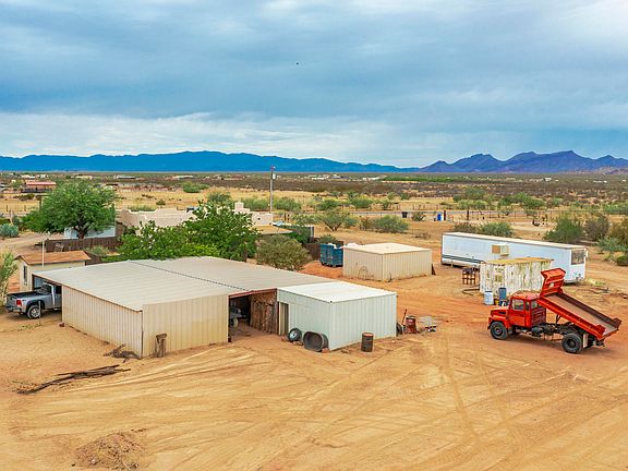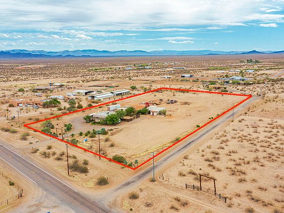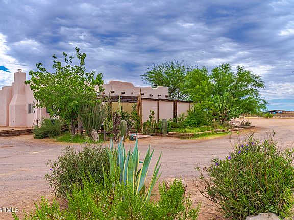 Come take a look at this lovely custom, one owner Territorial style home. Sitting on 5 acres, fully fenced in with pipe and no climb. NO FLOOD! NO HOA! Mountain Views! Roping arenas within 20 minutes in each direction. Large covered front porch. Open floorplan. Tile floors throughout home. Relax by the fireplace in the living room. 3 bedrooms, 2 bath. Exit the back door to a covered back porch. Metal, covered stalls, tack room/hay storage. 3 stalls on one side, 4 on the other. 12 ft Isle. Small shed. Large Metal storage shed. Conex box. Mature landscaping. Lots of room for your arena, round pen and additional stalls. Paved road. Gated entrance.
