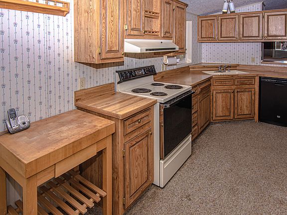 Single story 1,502 sf, 3 bedroom + den, 2 bathroom home located on a .98 lot in Ponderosa Pines; dual pane vinyl windows; red oak cabinets, laminate countertops, electric cooktop/oven, dishwasher and refrigerator; breakfast nook; vaulted living room with woodstove; dining room with built-in oak china cabinet; master bath with red oak cabinets, single vanity, soaking tub and separate shower; guest bath with single vanity and shower; vaulted den/office with built-in cabinets and shelving; laundry room with Kenmore washer and dryer, overhead red oak storage cabinets; large covered porch leading to attached garage; composition roof; oversized detached 2-car garage/shop with metal roof, separate shop area with workbench, wood-burning stove, built-in wood shelving, sink with countertop, full bath; enclosed carport; covered wood storage; extra parking areas for RV, trailers or boats; (2) circular driveways with (3) lockable entrance gates for access to property; full fenced; low HOA fee.
