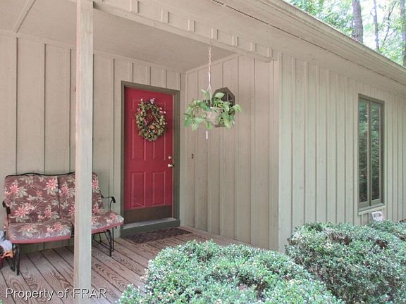 This lovely home is located in the gated community of Carolina Trace. Nestled in the woods of the Mallard Cove area on a quiet culdesac, this house comes with two lots and backs up to a farm lending extra privacy. You will love the bonus room/office or possible 3rd bedroom with built in desk area and cabinetry. Approximately 9 years ago the owners added a double carport and a three season porch complete with multi track storm windows offering good circulation during the periods which you would need them down and the ability to put them up in colder weather for needed warmth. The open living, dining and kitchen area with vaulted ceilings and sky lights lends itself to entertaining. A door off the dining area opens to the three season porch, making your entertainment options even better. Back inside just down the hall are two bathrooms, two bedrooms and a bonus/office/guest room. The washer dryer hookup is also in a closet in the bonus room. The kitchen offers stainless steel appliances, which were all updated 7-14 years ago. Plumbing, electrical, roof and hot water heater were also updated in the same time period. Call today to get your showing lined up to see YOUR NEW HOME!