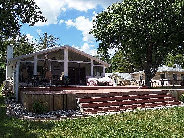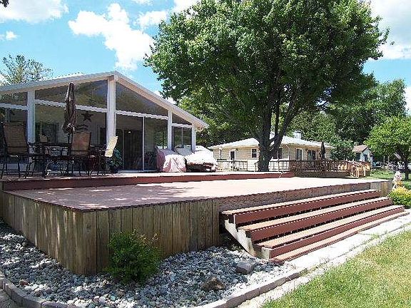 Memories at the lake! You can make them here in this move in ready home located on a Wixom Lake canal not too far from the main lake. 61' of water front with a wood seawall and a boardwalk made from trex decking that runs the full length. Nice deep lot that is level to the waters edge makes this a great spot for all ages! 2 levels of extensive decking are perfect for entertaining or relaxing on. Covered patio just off the main door protects the entrance and would be a wonderful place to grill. This 2 bedroom, 1 full bath home would make a great second home at the lake or is ready for year round living. Enter into the laundry room with ceramic tile and a large closet. Roomy kitchen with appliances included. Open living room is done in beachy colors, has a fireplace and opens up to the huge sunroom which would be perfect extra sleeping space. The master bedroom is extra large! 2.5 car garage and concrete drive and many updates complete the package. Located on a paved road.
