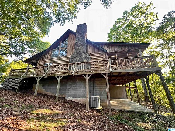 This log home is set right on top of a ridge surrounded by a beautiful natural setting of mature hardwood timber. On the main floor is an open living room with high ceilings and wide glass windows that let in plenty of natural light and allow for great views. The living room flows into the kitchen, with a center island, making meal prep easy. The primary bedroom with a large bay window and a bathroom are also on the main floor. Upstairs is an open loft area, and the other bedroom has a bathroom adjoining it upstairs. The basement area features another fireplace and living area, along with a bathroom and a two-car garage that is very spacious. If you like porches, this place has porches set up around the house's east, north, and west sides, with plenty of places to sit on the side and enjoy a sunrise or sunset. he surrounding land is mature timber with very few houses in the area, and wildlife routinely frequent the yard.