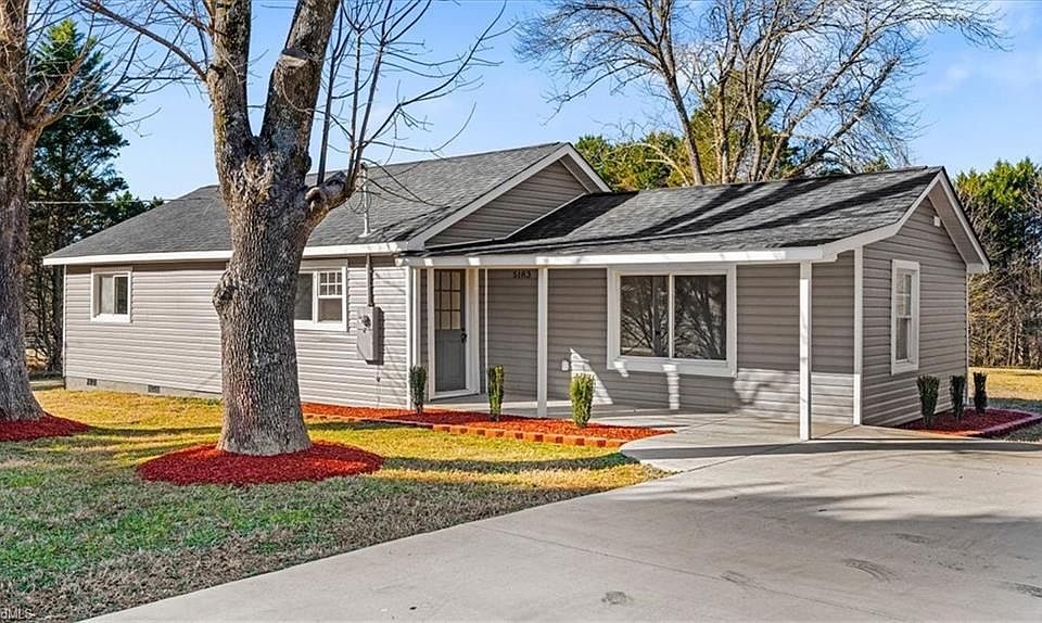Welcome to this beautifully updated 3-bedroom, 2-bath home on 0.78 +/- acre of peaceful countryside! In close proximity to the Mega Site. This charming one-story residence boasts new siding, a new roof, a new HVAC system, and a concrete driveway, enhancing its curb appeal. Enjoy the spacious backyard, a covered front porch, and a large back deck—perfect for relaxing or entertaining. Step inside to an open floor plan with stylish LVP flooring, recessed lighting, and a bright, airy living space. The kitchen shines with new cabinets, granite countertops, and stainless steel appliances. The primary suite features an en suite bath with a sleek vanity and tiled shower walls, while two additional bedrooms provide comfort and flexibility. A dedicated laundry room off the kitchen adds convenience, and a newer water heater ensures efficiency. Enjoy the perfect blend of modern updates and rural tranquility—just a short drive from town. Don’t miss this move-in-ready gem!