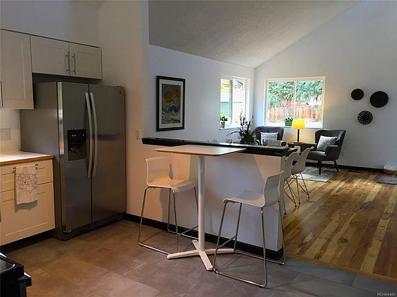 Beautifully remodeled home with vaulted ceilings and open floor plan. Clerestory windows flood the home with light. Close to the soon-to-open G Line Light Rail Park & Ride. Near open space & parks; easy access to Denver, Boulder, and mountains. Everything is new: hickory hardwood floors, kitchen with IKEA cabinets, farm sink, super-quiet high-efficiency Bosch dishwasher, convection oven, high-CFM range hood, and high-end stainless steel fridge. Master suite with 2 walk-in closets and sliding barn-door to bathroom/walk-in closet. *Finished basement has huge great room, 2 bedrooms (or office, craft room, etc.), full bathroom, and utility/workshop/laundry space. *Park-like yard with mature trees, privacy fence, water feature, raised beds & dog run. *Energy-efficient features include high-efficiency furnace, new windows throughout, LED lighting, and super low-water landscaping. *Garage with door to side yard, workbench, electricity, AC.