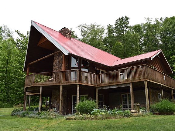 PRICE REDUCED! Drive down the long tree-lined lane and you will find this large, custom log home welcoming you in with open arms. Offering over 4,800 square feet of living space, including four bedrooms and three full baths, a large eat-in kitchen and a great room with a two-story stone fireplace framed by huge windows that let in tons of natural light. The first-floor master suite has a private bath, dual walk-in closets and exits onto the deck. A second bedroom, full guest bath and convenient laundry room round out the main floor. Upstairs, a large loft with a private balcony makes a great fourth bedroom, playroom or home office. Head downstairs and you will find a walk-out basement with an oversized bedroom, full bath, large wet bar, storage and rec room with a second stone fireplace. Enjoy your morning coffee at sunrise on the wrap-around deck overlooking the fully stocked pond or evenings fishing and entertaining family and friends around a fire in the outdoor kitchen. The remainder of the property is wooded with great access from well-maintained ATV trails and holds fantastic deer and turkey populations. Additionally, a detached two-car garage with loft storage and a large heated shop with 18-foot ceilings, a mechanics pit and an attached finished living area that's perfect for the serious gearhead or would make a great home shop and office to run a business. No expense was spared when building this Alaskan-style lodge and it is now ready for you to love and enjoy just as much as the original owners. Call today to learn more and to schedule a time to see this stunning secluded retreat for yourself!