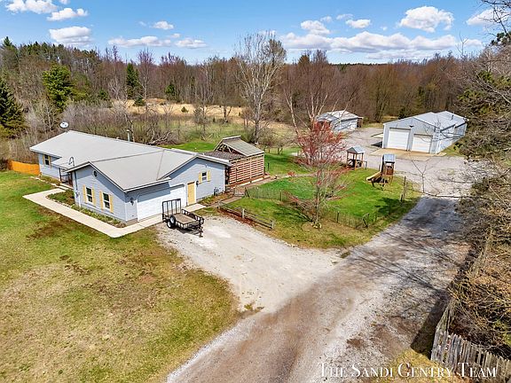Nestled on 5 scenic acres, this spacious 3-bedroom, 2.5-bath ranch offers a fantastic opportunity to make it your own. Clean, well-maintained, and move-in ready, the home features a great layout, newer carpet, and endless potential for your personal updates and style. What truly sets this property apart is the incredible garage space over 3,000 sq ft built behind the house perfect for a business owner, hobbyist, or anyone needing serious workspace. Thoughtfully designed, the heated garage includes built-in workbenches, a loft office, an integrated air compressor, and is heated by a Sunstar Eclipse infrared radiant tube heater plus two pellet stoves. It's divided into three main sections, each with roll-up garage doors and dedicated work zones — ideal for multiple projects, toy storage, or running a home-based business. Water and natural gas are available at the site, and poles already set to the south offer the potential for additional covered storage for your trailer or RV. A second garage, also divided into three sections, provides additional workspace, storage, and another roll-up door, offering even more flexibility. This is true country living, peaceful, private, yet just minutes from US-31, Duck Lake, and Muskegon State Parks. With a little updating, this property could easily become your dream forever home. Don't miss out , schedule your private tour today!