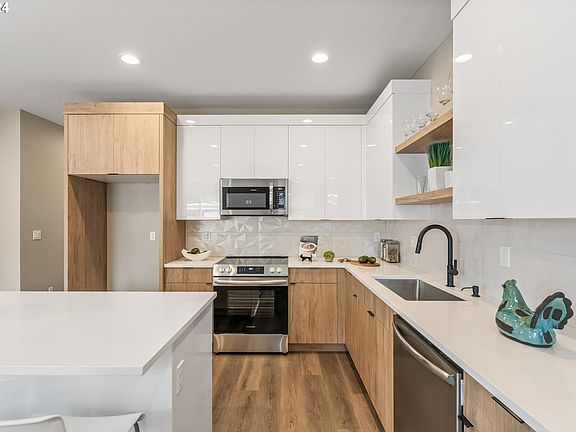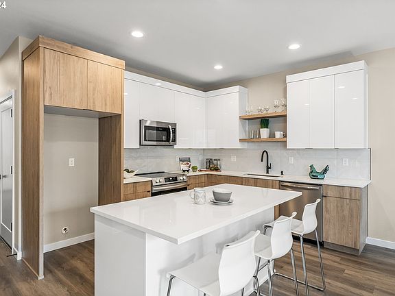 No HOA! Just completed top notch new construction townhome in desirable neighborhood! 3 bedrooms and 2.5 bathrooms. Stylish high-end finishes and amazing quality! High efficiency ductless mini-split system with heating and cooling and heat pump water heater. Open and modern floorplan with spacious family room including an electric fireplace. Custom cabinets, quartz countertops, waterproof LVP floors, high end appliances, and beautiful tile work. Low maintenance fenced yard with patio. [Home Energy Score = 10. HES Report at https://rpt.greenbuildingregistry.com/hes/OR10232570]