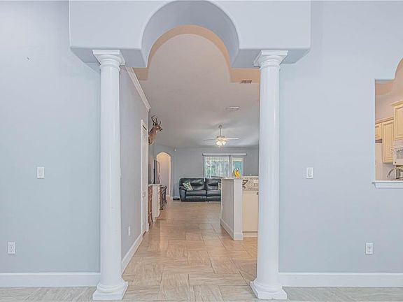 - Interior Features: Ceiling Fans(s), High Ceiling(s), Master Bedroom Downstairs, Open Floorplan, Split Bedroom, Walk-In Closet(s), Solid Wood Cabinets, Thermostat, Kitchen/Family Room Combo, Living Room/Dining Room Combo, Built in Features, Cathedral Ceiling(s)