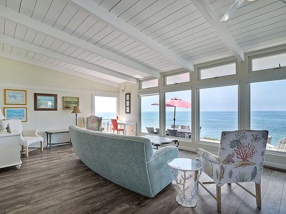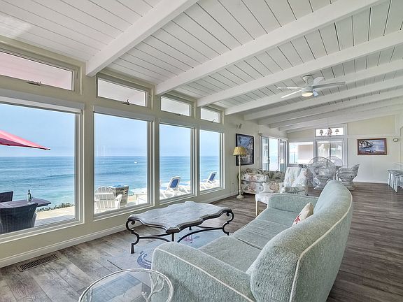 Wake up to the sounds of the surf at Shore Drive, an oceanfront getaway with a private staircase leading down to the shores of Carlsbad, CA. This 3-bedroom, 3-bathroom home features wall-to-wall windows on the ocean-facing side for an unobstructed, panoramic ocean view. After spending the day at the beach, enjoy home-cooked meals in the fully stocked kitchen or a sunset BBQ on the patio, and restful nights in the comfortable bedrooms. Shore Drive is a three-bedroom, three-bathroom oceanfront home in beautiful Carlsbad, California. Since this home is oceanfront, it does not have AC, but opening the doors facing the ocean in warmer months will cool the home quickly. The open concept living, dining, and kitchen area features floor-to-ceiling windows along the entire west-facing wall for panoramic ocean views. Enjoy a bright and sunny ocean-view sitting area, a separate entertainment nook with comfortable seating, a smart TV with access to live TV streaming and Netflix, and a selection of family games and puzzles. The SONOS sound system is available for guests to use. The kitchen includes a refrigerator, gas stove, oven, microwave, dishwasher, cookware, glassware, dinnerware, utensils, toaster, blender, and other cooking gadgets. A quartz-topped peninsula with barstool seating and a Keurig coffee maker with complimentary k-cup pods, creamer, and sugar are also provided. A traditional drip coffee maker is available. The sunny dining room offers ocean views and a dining table with seating for six. Pets are allowed with a non-refundable pet fee of $150 for a maximum of two dogs. Garage and driveway parking are available. Located in the Terramar neighborhood, known for its excellent reef surf break out front of the house and fun tidal pools for kids to explore at low tide. Nearby attractions include Legoland (2 miles), Oceanside Pier (6 miles), San Diego Safari Park (27 miles), San Diego Zoo (33 miles), Del Mar Fairgrounds (13 miles), Sea World (29 miles), and San Diego Airport (34 miles). A car is recommended, but Shore Drive is serviced by both Uber and Lyft. Guests will have exclusive access to the entire property with self-check-in capability. The house, garage, and oceanfront patio are all solely for guest use. Quiet hours outdoors start at 9 PM and no parties are allowed. The home is perfect for remote working or distance learning, with an ocean view, a laptop-friendly desk and chair, and ultra-fast Wi-Fi with over 400 Mbps download speed.