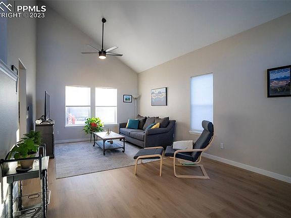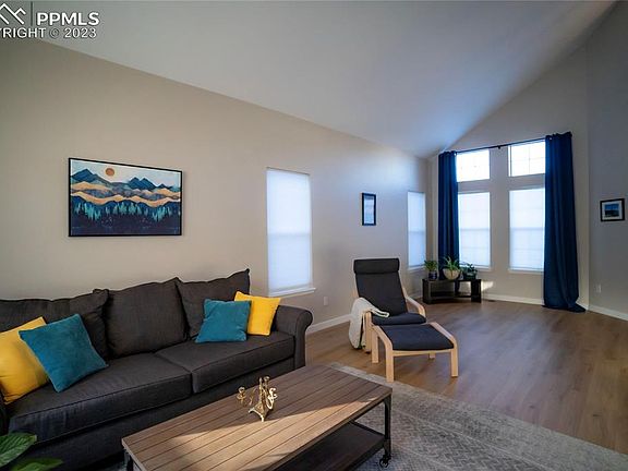You will be taken away upon entering this beautiful and updated 3 bedroom 3 bathroom home. Brand new flooring throughout the main and upper level. Enjoy your living room and dining area that offers vaulted ceilings and lots of natural light. Your beautiful kitchen includes all stainless-steel kitchen appliances, breakfast bar area, and breakfast nook. The family room is large with a gas fireplace and built in shelves. From the family room, walk out to your back deck and enjoy a summer BBQ or relax during the warm evenings that our summer's offer. The main level also has a half bathroom and main level laundry with washer and dryer included. Your master bedroom is large that will fit a king sized bed, dressers, and has a walk-in closet. Enjoy the views of Pikes Peak and the Front Range. The master bathroom offers a stand up shower and soaker tub. The two bedrooms are on the East side of the home and all rooms have ceiling fans. The upper level has a full bathroom close to the 2nd and 3rd bedroom and has a hallway linen closet. The basement is unfinished allowing you to design it to your needs. The home also has a new coat of paint throughout the interior of the home. This home is located close to schools, parks, shopping and entertainment. Schedule your showing today!