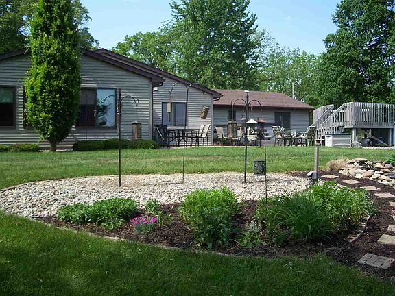 You will love the two acre outdoor space featuring paver and wood decks, fishpond, mature trees, swimming pool, hot tub,garden shed and elevated "play house" not to mention the over three hundred feet of lake frontage on Crooked Lake a very popular all sports lake! And yes the pier stays with the property for all your watercraft. Inside you will enjoy the beautiful sunroom, family room, large living room, ceramic tile, and gas fireplace. Lets view this one of a kind lake property soon!
