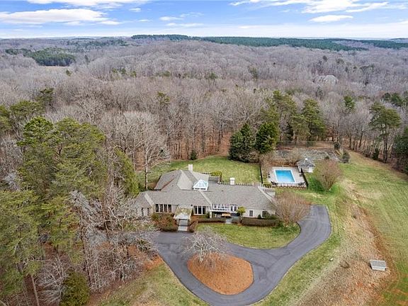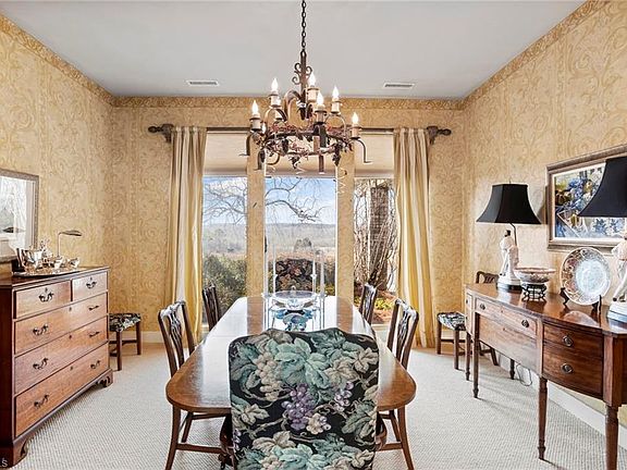 Gorgeous one level country estate atop an open knoll, is surrounded by rolling hills, woods & 246-acres of Conservatory! A beautiful pool & fountain in the backyard is surrounded by a rose garden, peonies, day lilies, irises & jonquils. Breathtaking sunsets close the day in majestic strokes of color. This genteel home has 9' ceilings, oversized rooms including bonus room/4th BR upstairs. Centered in this open home is an impressive atrium with palm trees, various plantings & orchids. The open kitchen has granite counters & superior appliances, including a large Viking refrigerator, 6-burner gas built-in stove with grill & large double ovens. A patio off the kitchen is the perfect place for wining, dining and delighting in the sunset. A custom workshop w/heating and A/C. An enchanting little red barn sits nestled in the woods. A 15-minute drive to W-S and 5 minutes from charming Lewisville, this extraordinary home has it all. Horses welcome!