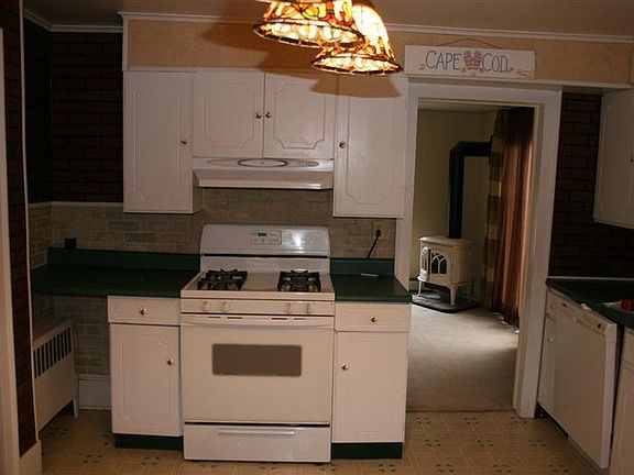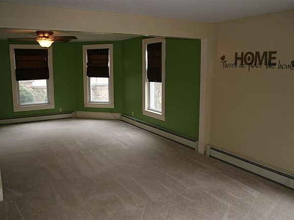 This gorgeous and cozy 4 bedroom 1-and-a-half bath 1500 square foot home is located on a .13 acre lot in a quiet town. The kitchen is complete with bright white cabinets, as well as a space for a kitchen island, or small table. Downstairs along with the kitchen you will find an open floor plan for the living room and dining room. The sunny downstairs dining room has a gas fireplace, just perfect for those chilly winter nights. Upstairs are four bedrooms, & one full bathroom. This beautiful home also comes with a covered front porch, a deck in the back yard, with a breath taking view, a detached two-car garage, as well as additional storage space under the back deck. There are beautiful stone walls in the front of the home. Call this home yours today.