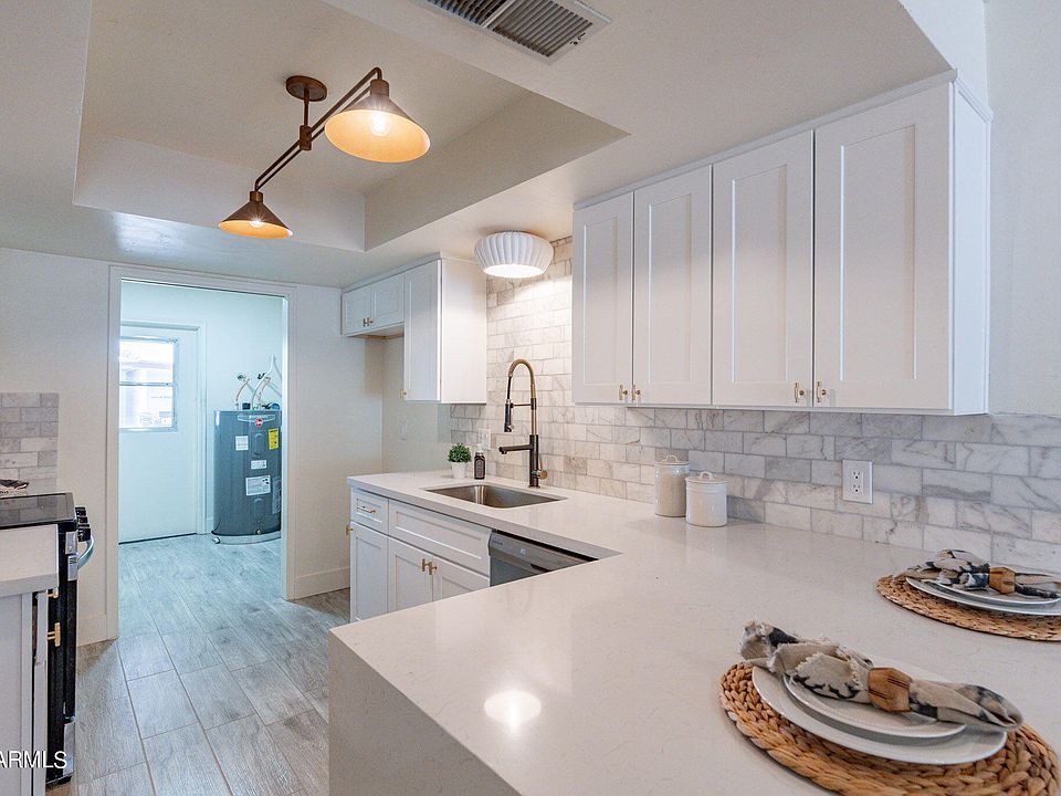 Nestled in the vibrant heart of Central Phoenix, located a few minutes from the AZ-202 freeway & only 20 minutes from downtown Phoenix & 10 minutes from downtown Scottsdale. This newly renovated 2 bed, 2 bath townhome offers contemporary living at its finest. Step inside to discover a bright & airy open-concept living space, w/ new paint & wood-look tile flooring throughout. The kitchen offers white shaker cabinetry, quartz counters, stainless-steel appliances, complete w/ a breakfast bar. Relax in the primary bedroom w/ new carpeting & full ensuite, w/private access to the AZ Room providing a sense of privacy & tranquility. Featuring a distinctive Arizona room with a cozy fireplace, perfect enjoying year round relaxation.