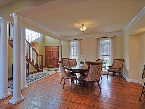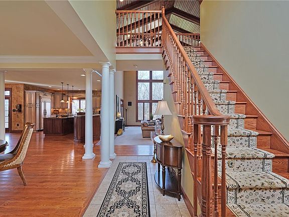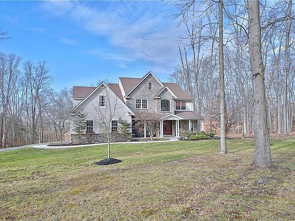 Custom built beauty situated on private 4.28 acre lot! 2 story foyer welcomes you to an open concept design with gleaming hardwood floors, and spectacular views. Custom kitchen features gorgeous artisan painting technique and contrasting center island. Addt'l upgrades include panel front refrigerator, new cooktop, and new dishwasher. Large, yet cozy, great room with planked wood cathedral ceiling, 2 story wood burning stone fireplace, and floor to ceiling picture windows offers an incredible view of wildlife, falling snow, and spring blooms. The main level of this spacious home also offers a lovely tiled sunroom which could be used as 1st floor office or schooling space. Upstairs you will find a master bedroom ste, 2 bedrooms, and loft style office space that can easily be converted to a 4th bedroom. Addt'l amenities include 1st floor laundry/mudroom with dog wash/utility tub, 2 zoned heat and ac (new 1st floor unit 12/20), and large basement awaiting your finishing touches.