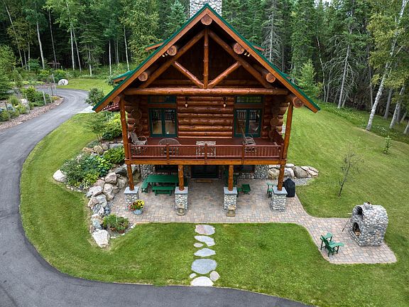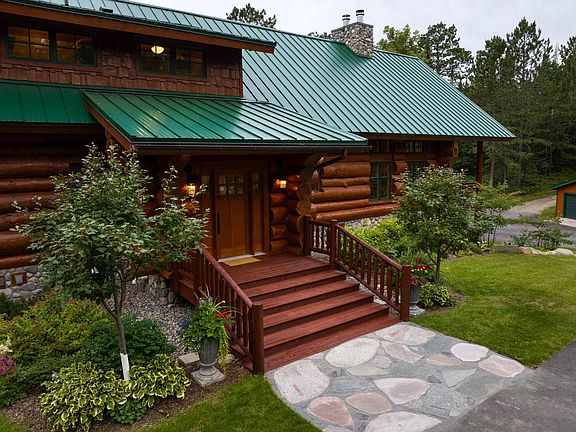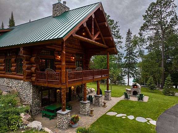 Exquisite custom built Anderson Log home located on Premier Turtle lake. This property falls nothing short of breathtaking. No detail was left out in the quality of craftsmanship. Nestled along 360 feet of shoreline & almost 12 secluded acres is a combination of privacy and lake life tranquility. Thoughtfully designed to have the primary suite, laundry & all amenities on the main level. Entertaining is seamless in this open greatroom, with stunning rock fireplace, kitchen and dining area. Guests quarters upstairs in the lofted bedroom with it’s full bathroom, walk in closet and double roof dormers, allowing additional office & living space. Full walkout basement has a wet bar, additional family room, office and bedroom with full bath. Directly off the family room is a Belgard stone patio with custom built stone woodburning pizza oven, perfect for gatherings. The sauna is directly on the waters edge. Level shoreline for swimming. Home is protected with a whole house generator system.