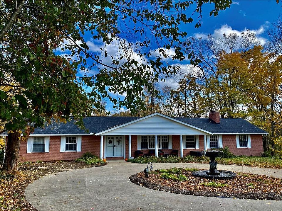 Stunning raised ranch surrounded by 4 wooded acres located in Green Ohio with over 5,000 sq. ft. of living space that has boundless possibilities. Living area showcases distressed solid alder wood kitchen cabinets and formal dining room. The master bedroom includes remodeled en-suite and den with wood burning fireplace and access to deck. The main floor also includes three bedrooms with two full baths. Elevator access to lower level where you can enjoy the spacious great room with fully equipped kitchen, full bath, wet-bar, wood burning fireplace, game room, sauna and hot tub. Walk-out to a partially covered 40â x 40â patio. For your convenience there are 3 attached garages.