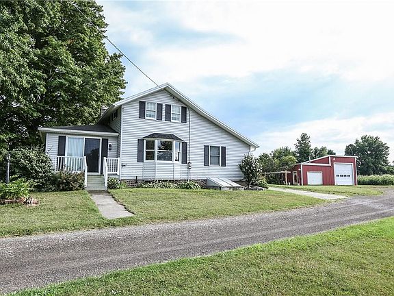 1800's Farmhouse remodeled in the 1980's sitting on almost 62 Acres in Ontario. This property features a large pole barn (48'x 103') plus a detached two bay (31'x20') and (20'x20') garage/shop that holds two cars with electrical and water service. The first floor of the home features the primary bedroom with ensuite bath, living room, dining room, family room, eat in kitchen with hickory cabinets, heated sunroom, laundry, foyer and a second full bath. The second floor features two additional good sized bedrooms. Hickory floors, large first floor layout perfect for entertaining.