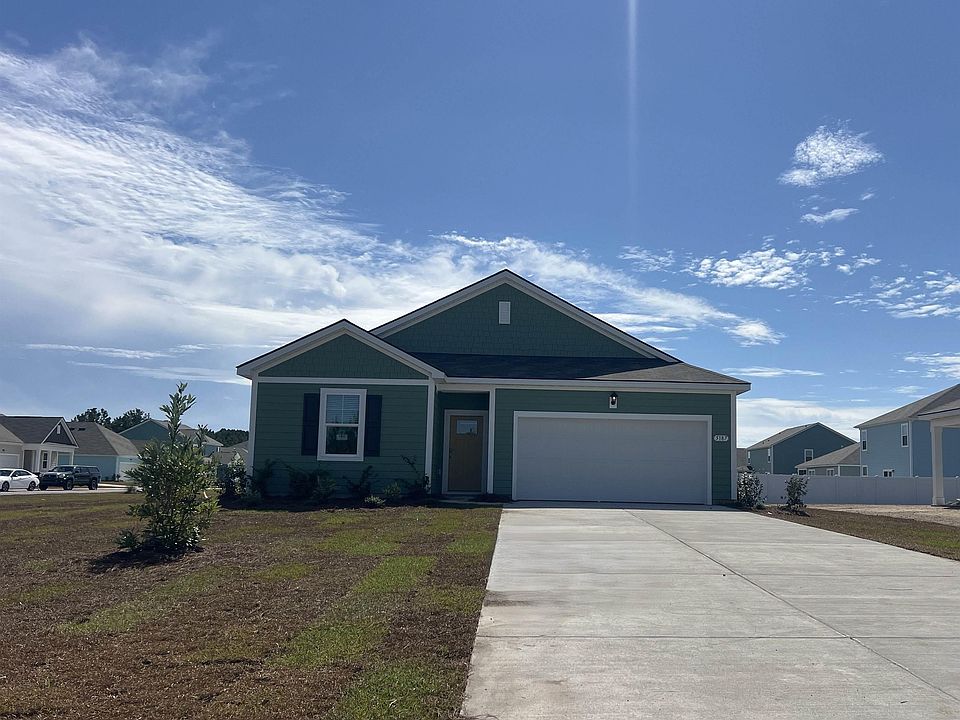 Welcome to Auberon Woods with easy access to numerous restaurants, shopping centers, attractions, golf courses, and beaches. Experience the Kerry floor plan offering an open layout, 9 foot ceilings and single level living. The kitchen boasts a large island with breakfast bar and opens to the casual dining area and spacious living room. Granite countertops, a tile backsplash, 36" cabinetry and stainless steel Whirlpool appliances including a refrigerator finish off the kitchen with beautiful and durable finishes. The primary bedroom suite is located at the back of the home with a generous size bathroom with a 5' shower, double vanity, and walk-in closet. Two secondary bedrooms are at the front of the home providing separation from the primary suite.  Enjoy your morning coffee on the covered back porch. This is America's Smart Home! Each of our homes comes with an industry leading smart home technology package that will allow you to control the thermostat, front door light and lock, and video doorbell from your smartphone.   *Photos are of a similar Kerry home.  (Home and community information, including pricing, included features, terms, availability and amenities, are subject to change prior to sale at any time without notice or obligation. Square footages are approximate. Pictures, photographs, colors, features, and sizes are for illustration purposes only and will vary from the homes as built. Equal housing opportunity builder.)