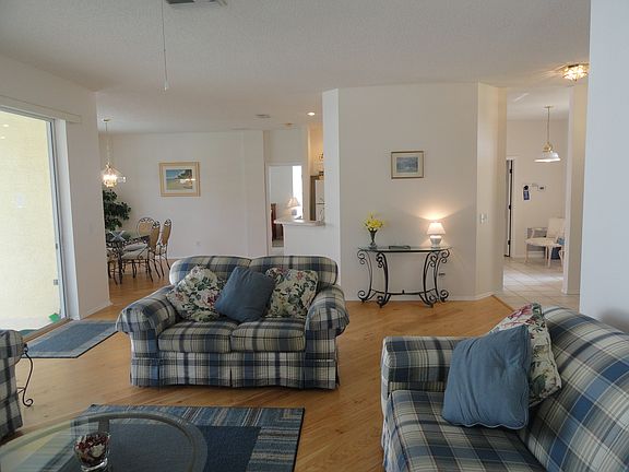 The most popular Sandpiper floor plan 1718 sq. ft home. A split plan of three bedrooms two bathrooms and two car garage. The kitchen adjoins the living and dining areas so the chef can prepare, chat and entertain the group. Updated stainless steel appliances in the kitchen that has plenty of storage. The breakfast nook space looks out to the front entry and across the street to a pond. The living/dining and kitchen are spacious open. The dining area has an additional 26 foot extension making this home a bit unique. Hardwood flooring and tile. There is a perfect flow of living space throughout the property. The master suite has a self-contained walk-in closet and full bath. The pool is electric heated and measure 15 x 30 in size. There are diagonal views out the back of the pool area to the pond. The interior of the pool was resurfaced in 2015. Home and lanai deck repainted in 2017. There is a full inside laundry room with storage space. Energy efficient R-30 insulation in the attic. New roof February 2020. Super location on the west side of town. Convenient to shopping, dining and the fabulous Suncoast beaches. The HOA is a very low $540.00 per year. Glenn Lakes has a small park and tennis court for the resident's enjoyment.